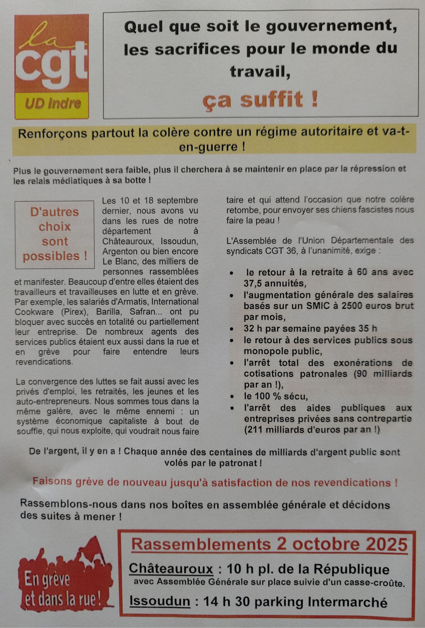 Union Départementale des Syndicats CGT de l'Indre